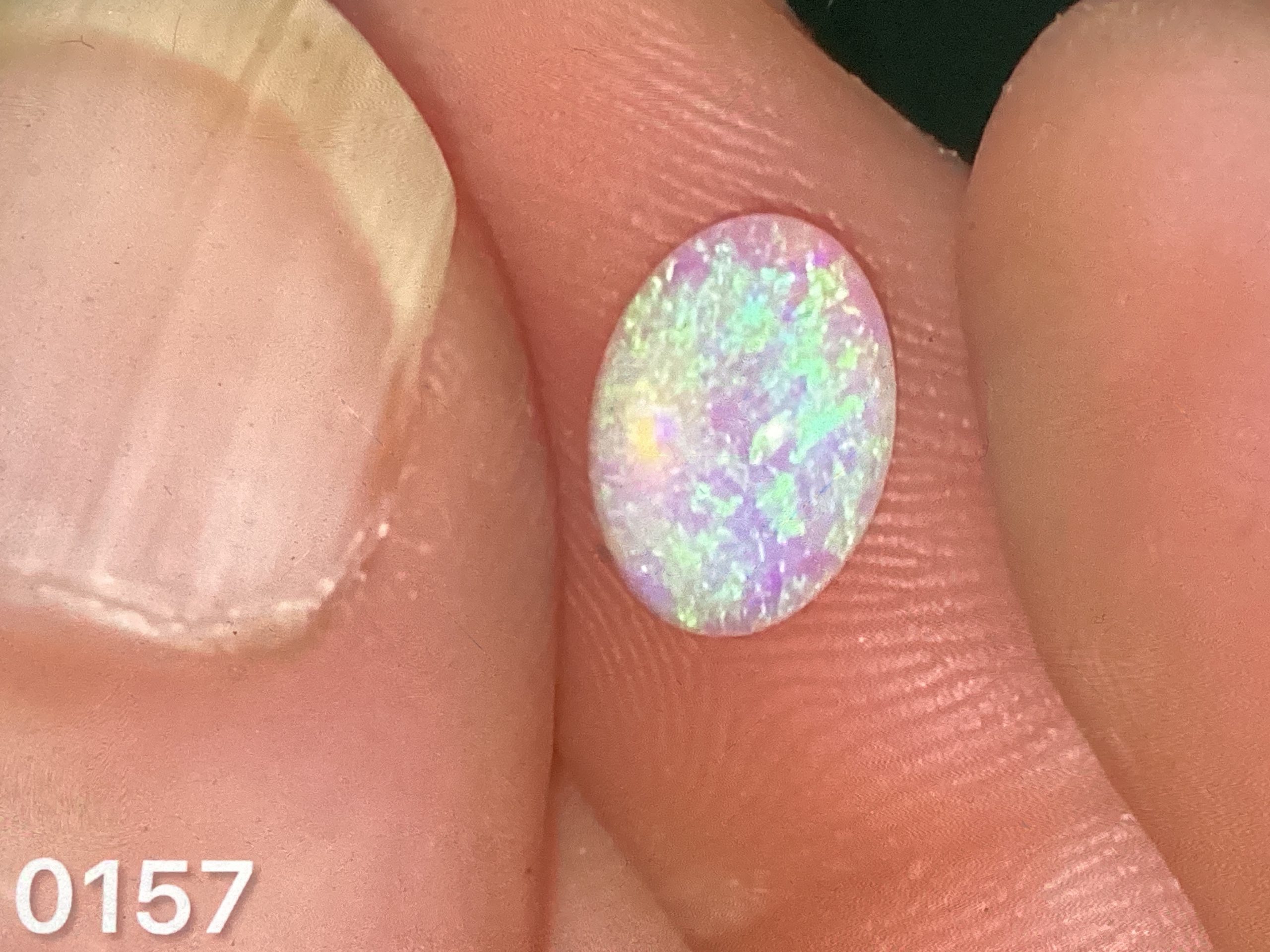 0.95 ct Andamooka opal. Green, oval cut. 7 x 10 x 3 mm. Use this link to view the video 0157 https://youtu.be/tYt5-MFMIw0
