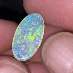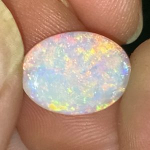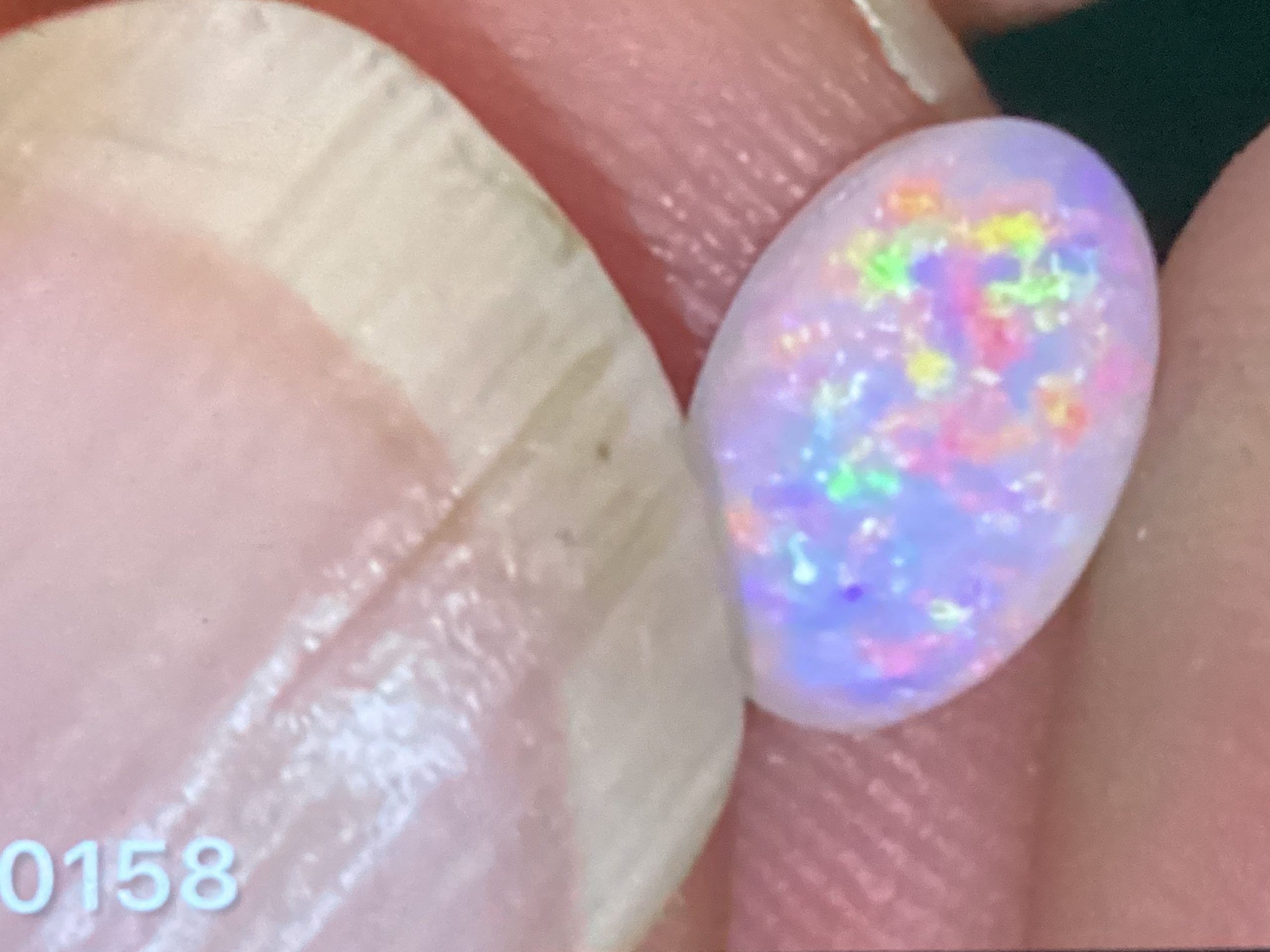 1.1 ct Andamooka opal. Multi colour, oval cut. 6 x 9.5 x 3.5 mm. Use this link to view the video 0158 https://youtu.be/w1KcR2hBcUk