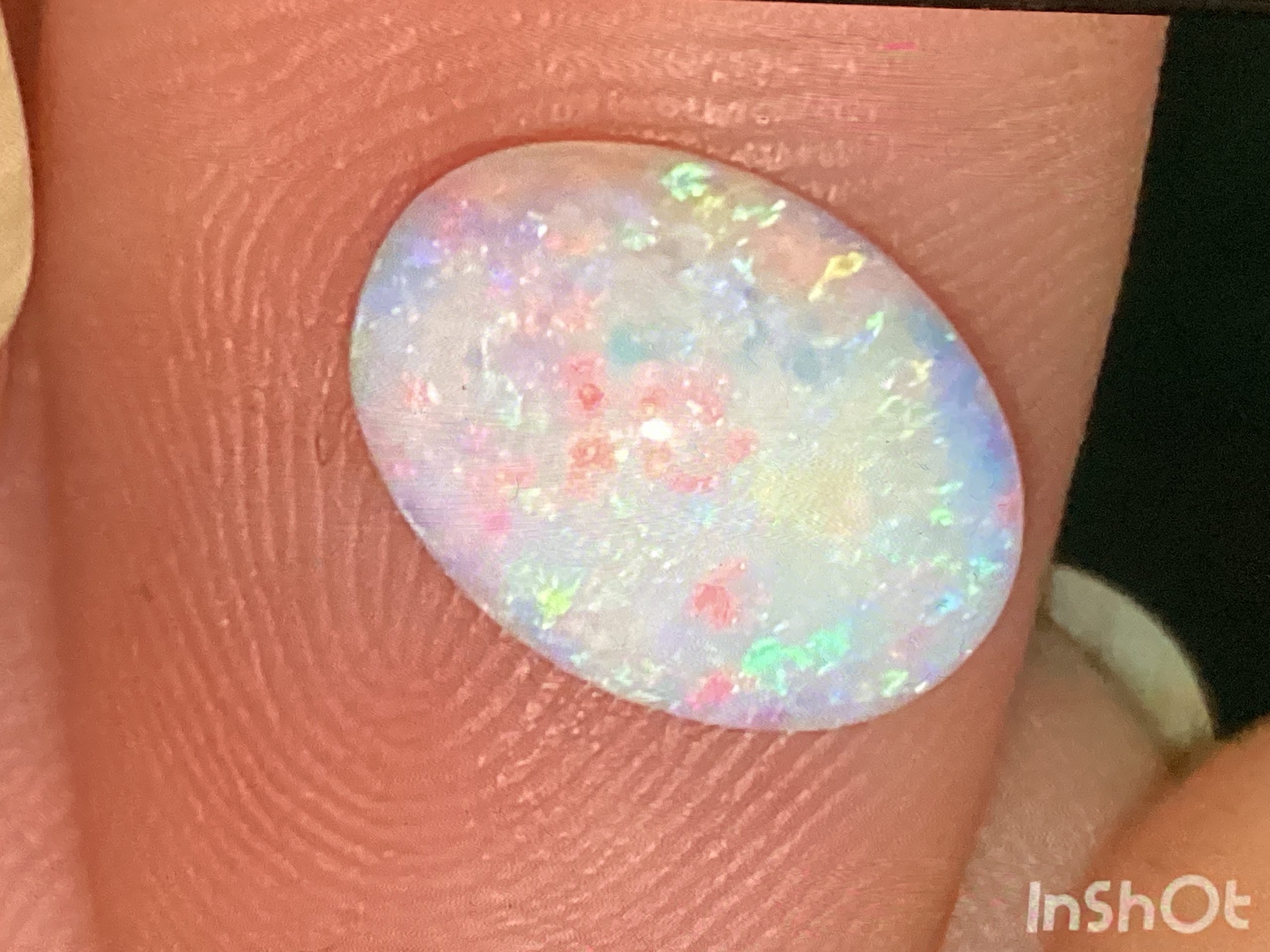 1.65 ct Andamooka opal. Multi colour, oval cut. 9 x 12 mm. Use this link to view the video 0142