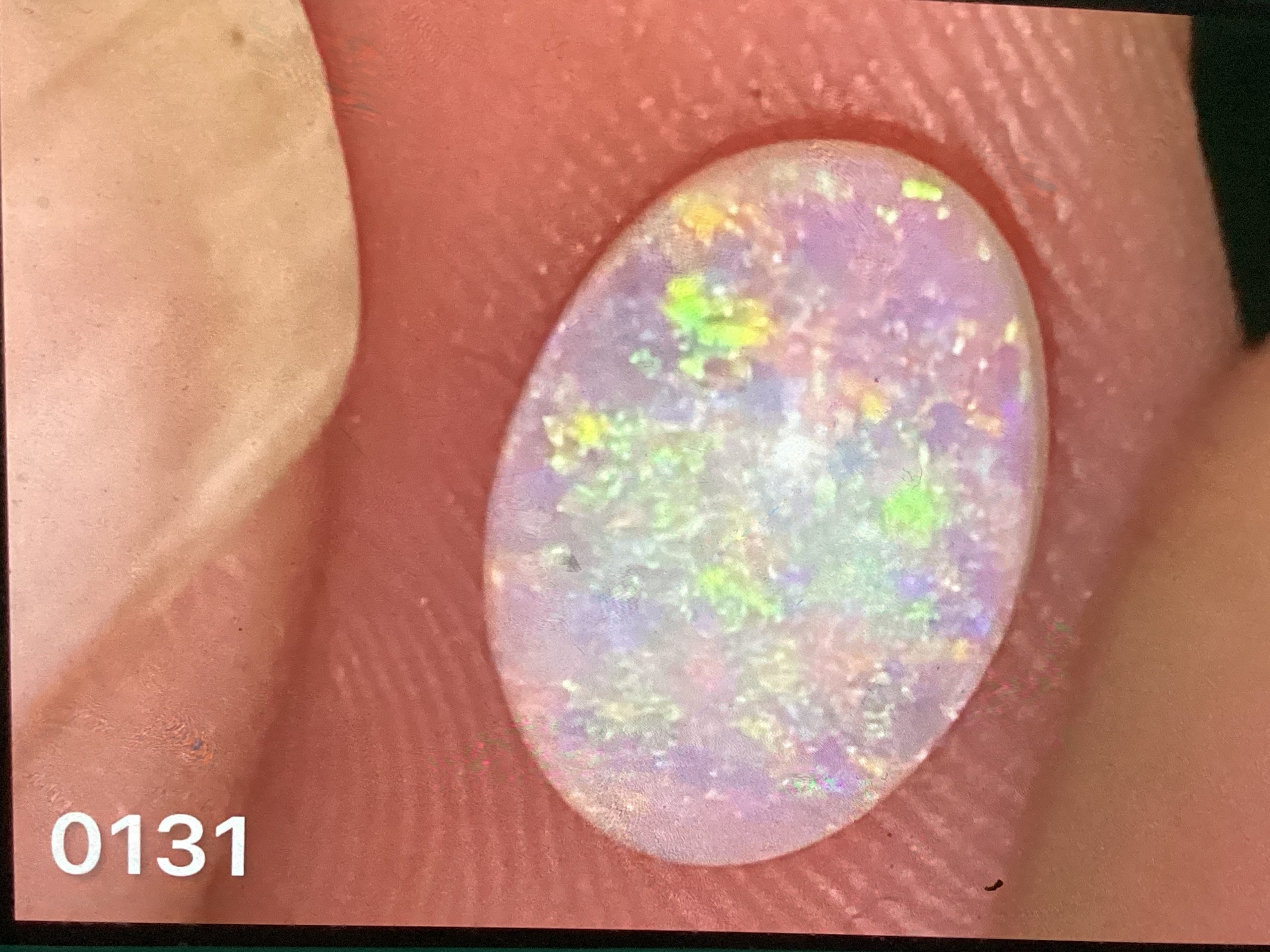 1.95 ct Andamooka opal. Multi colour, oval cut. 8 x 11 mm. Use this link to view the video 0131 https://youtu.be/EmIAFTZ-ssA