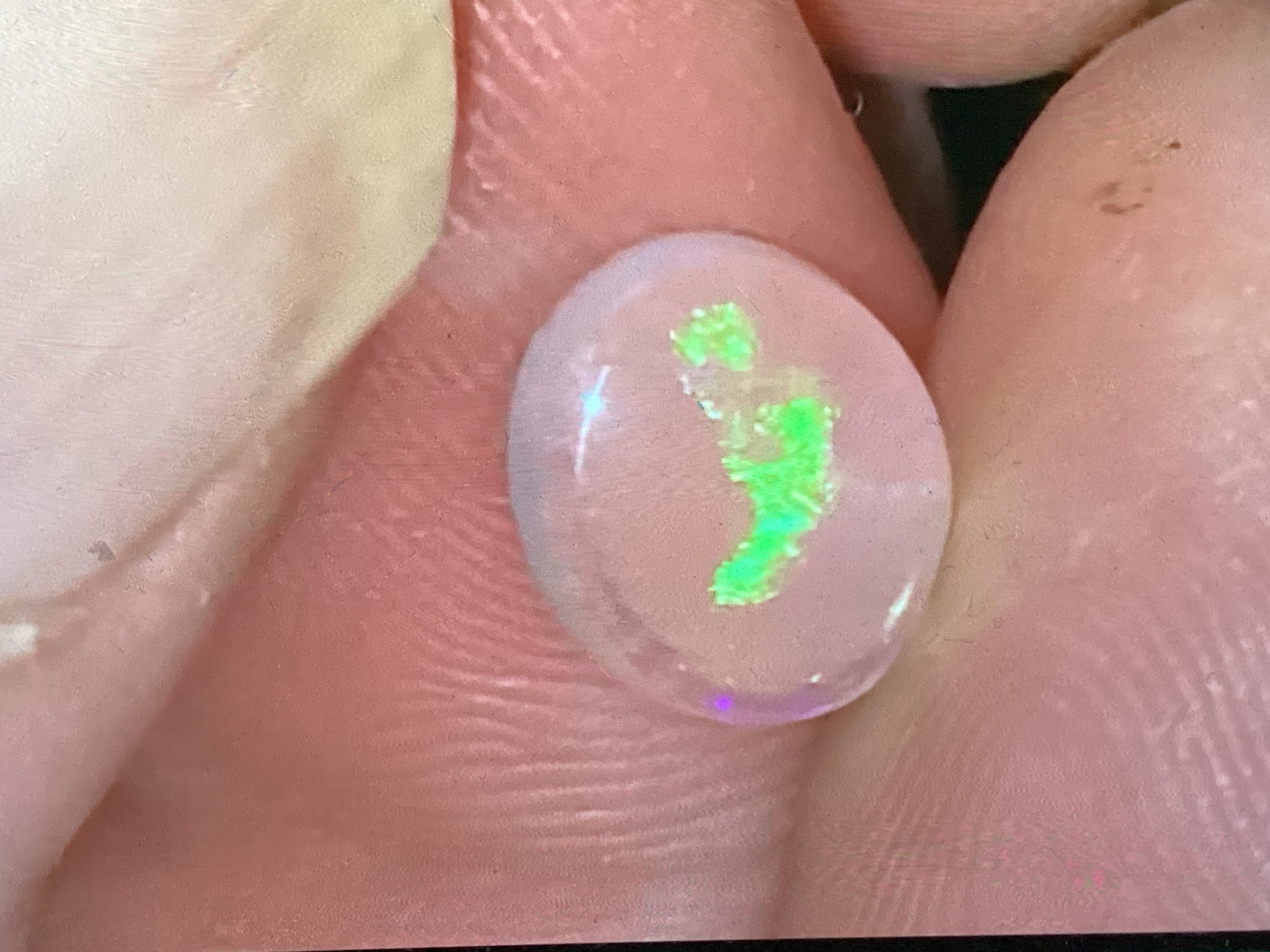 2.15 ct Andamooka opal. Red/green/blue jelly/sunflash. 8.5 x 11 mm. Use this link to view the video 0136 https://youtu.be/cYpAA6vv-Z8