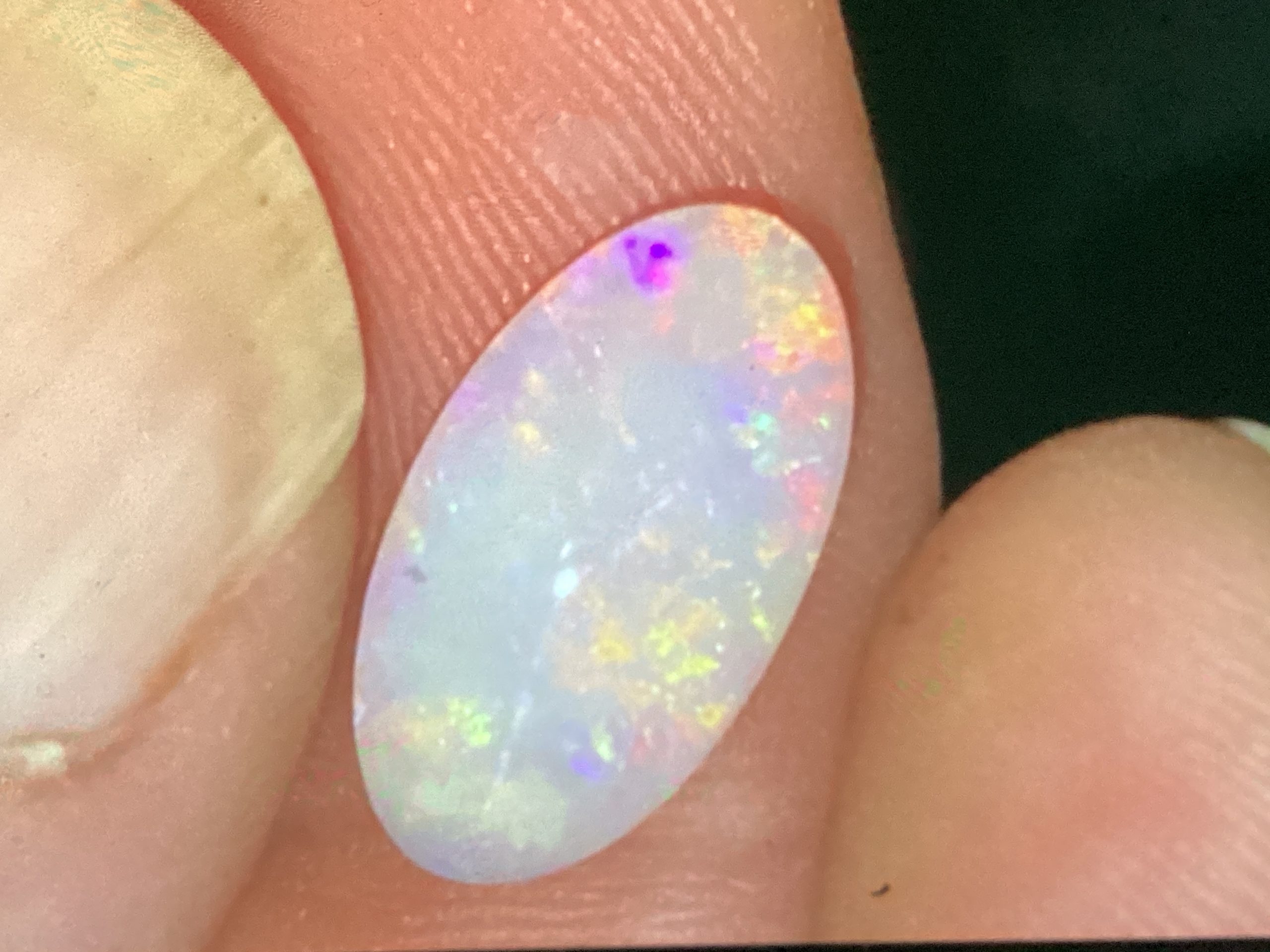 2.65 ct Andamooka opal. Multi colour, oval cut. 9 x 16 mm. Use this link to view the video 0130