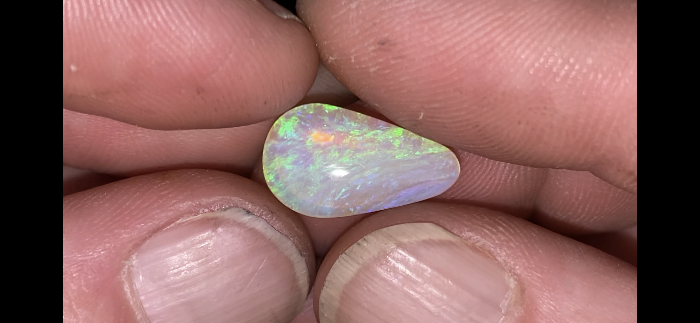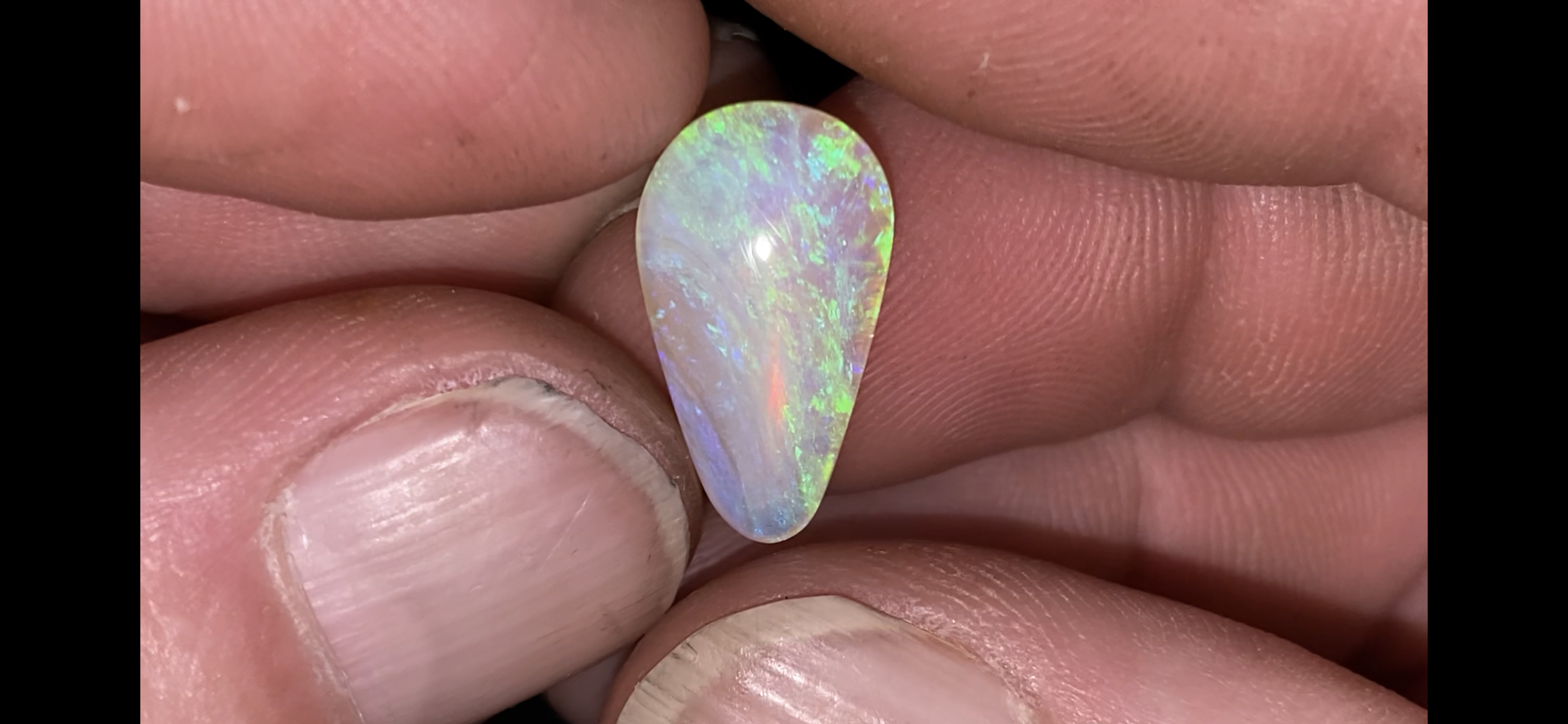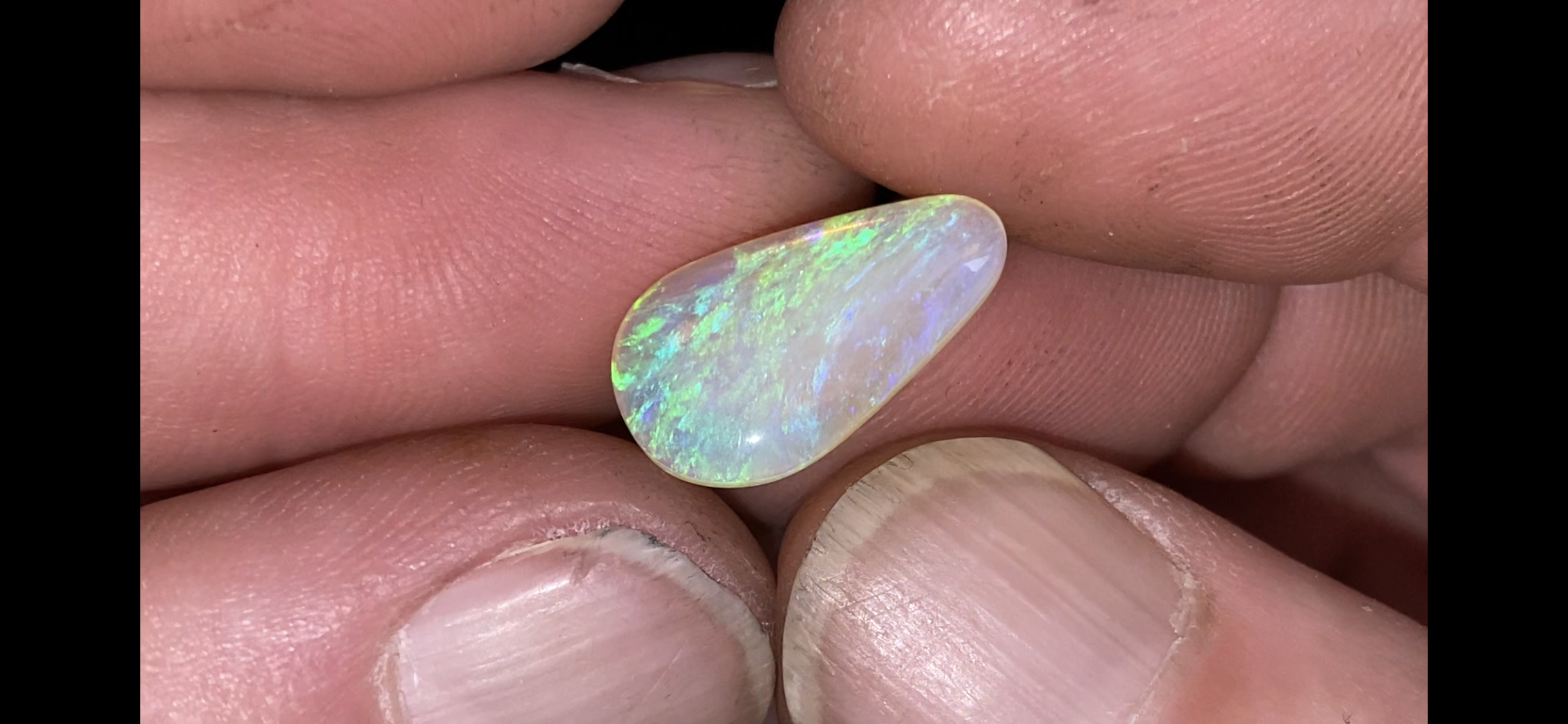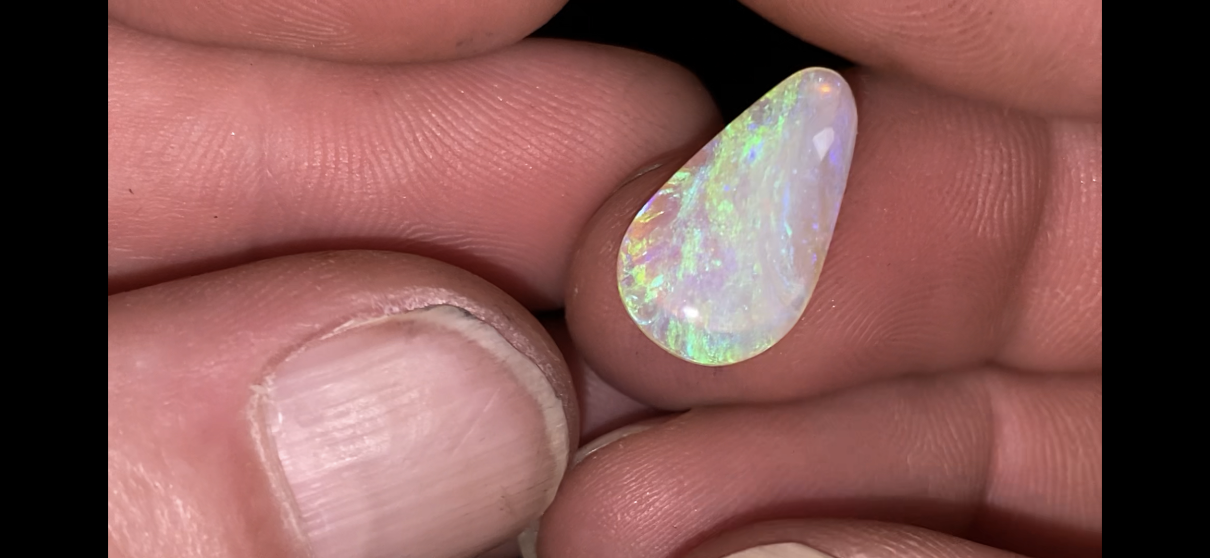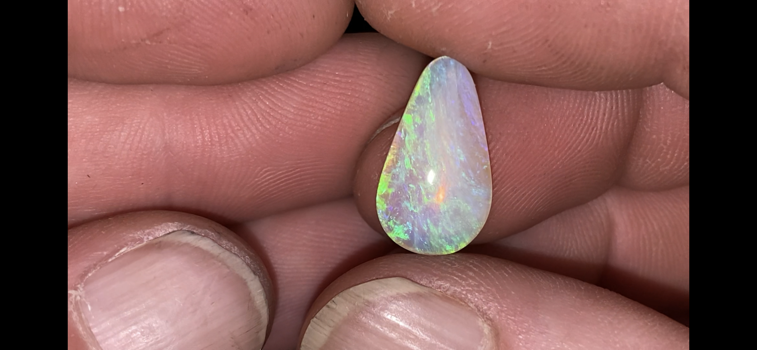 3.3 Green, Andamooka light crystal opal, drop cut, low dome, 17x10x3mm, suit pendant or ring. Postage will be adjusted for international buyers.