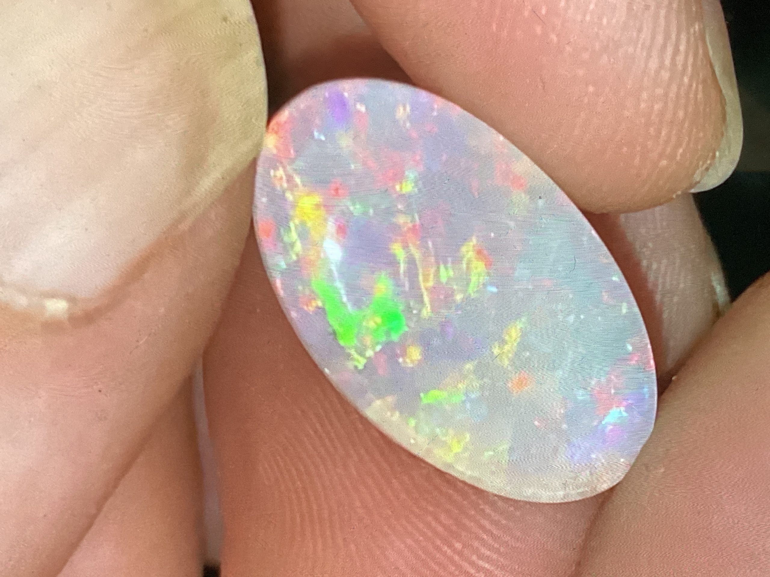 5 ct Andamooka opal. Multi colour with pinkish red, oval cut.12 x 20 mm. Use this link to view the video 0132 https://youtu.be/s3ZI2QBaaWQ
